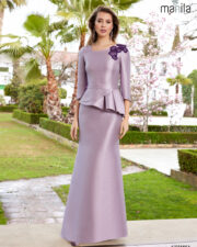 Elegante vestido de madrina confeccionado en gazar de seda. Este vestido es ideal para ser la madrina perfecta, con un peplum que marca la silueta perfectamente. Esta fabricado en España apostando una vez mas por el made in Spain, vestido de Manila, firma afincada en Granada.