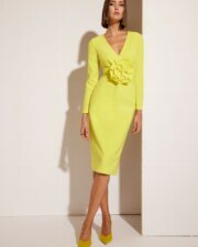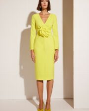 Vestido flor centro en corto confeccionado en crepe y super estiloso, para ser la invitada perfecta en cualquiera de tus eventos